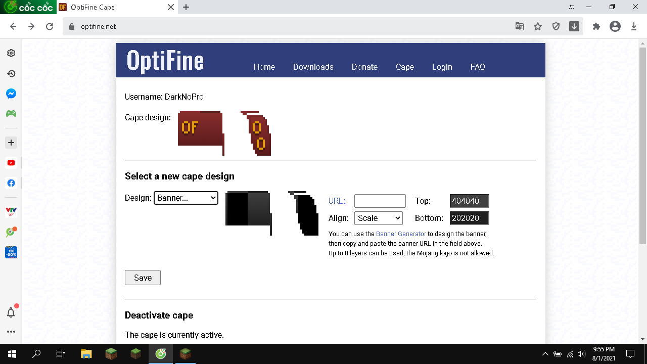 Sản phẩm đã mua: Cape Cape Optifine [Gốc]
