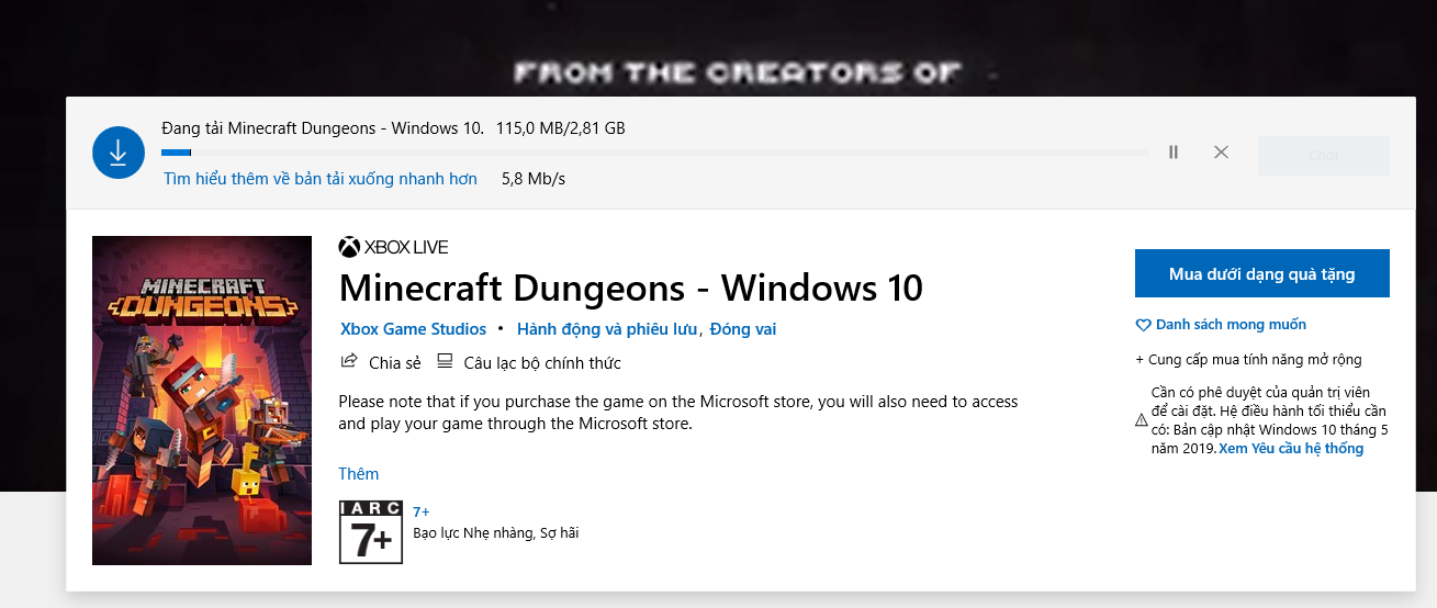 Sản phẩm đã mua: MINECRAFT DUNGEONS STANDARD EDITION