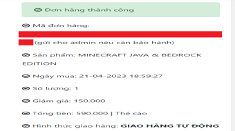 Admin trả lời: Shop cảm ơn bạn đã đặt mua Minecraft ủng hộ shop nha ! Nếu cần hỗ trợ gì thêm về acc bạn cứ liên hệ lại nhé :D