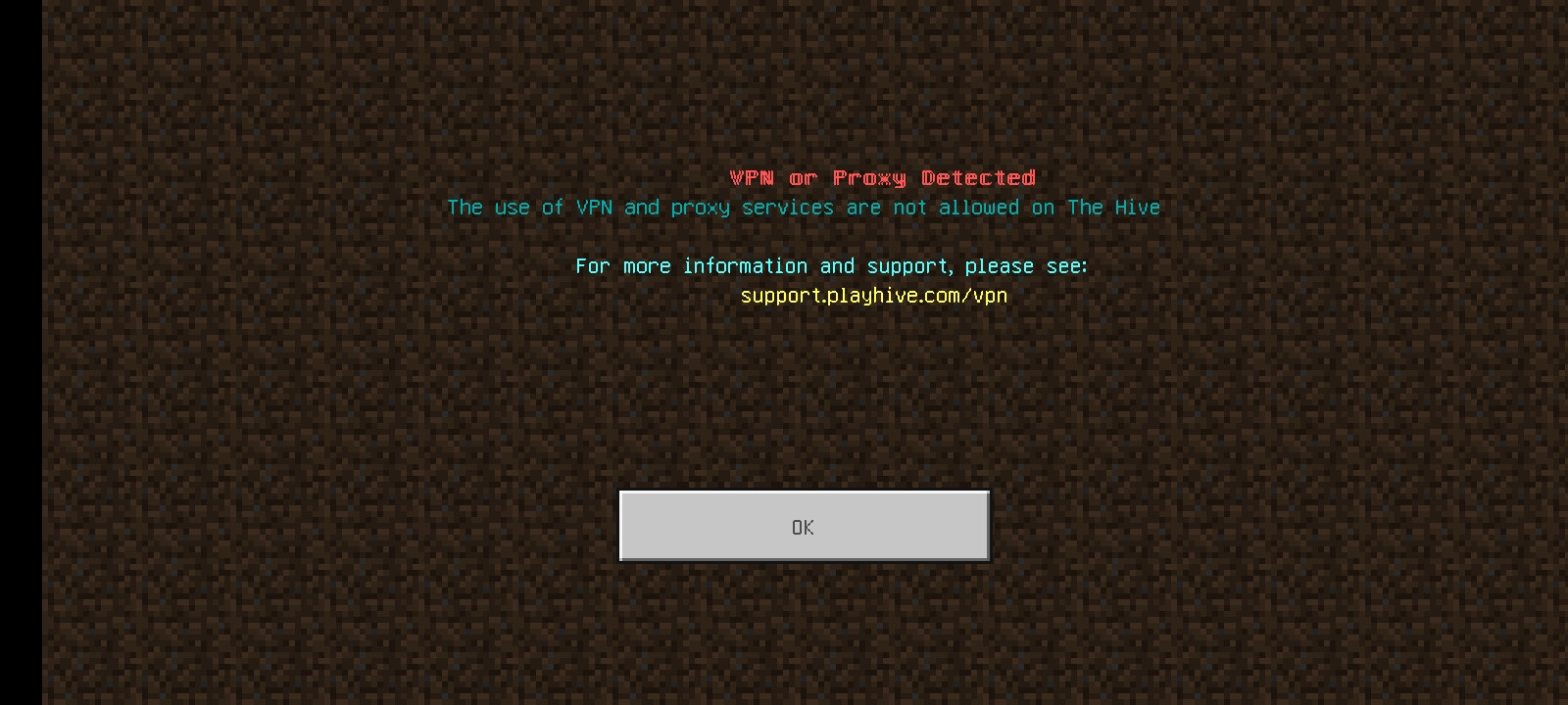 Admin trả lời: Hình ảnh là bạn đang vào máy chủ Hivemc, họ thông báo là bạn đang dùng VPN hoặc Proxy bạn hãy tắt nó đi trước khi vào lại.